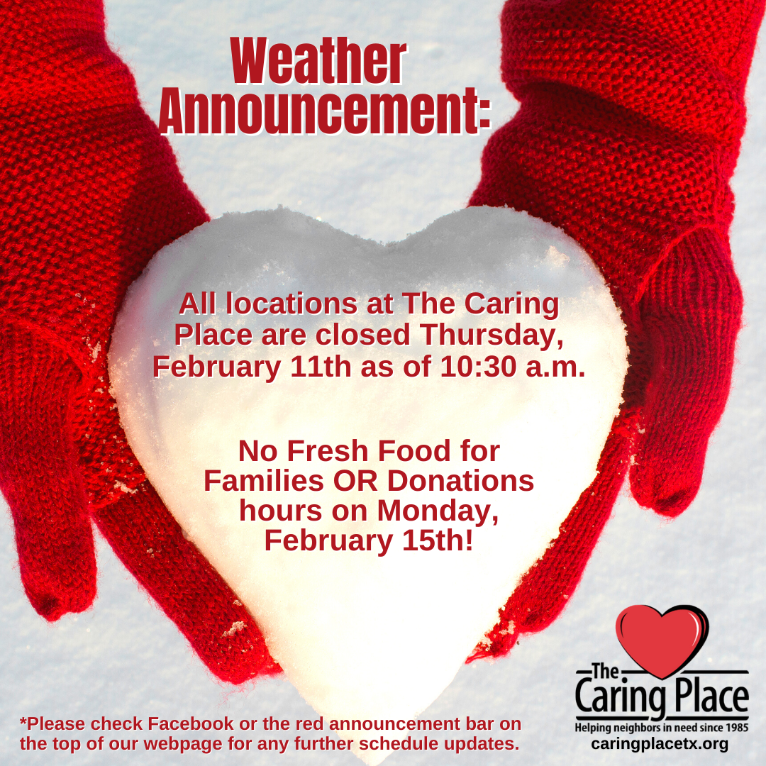 All Locations Closed at 10:30 a.m. due to inclement weather.